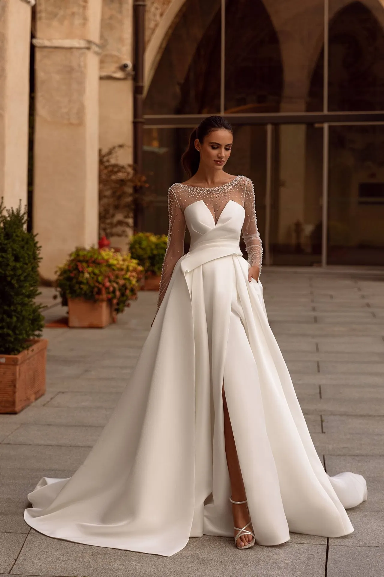 Faites sensation lors de votre mariage civil avec la robe Bellini, une création exclusive de la styliste russe Dovita, disponible dans la collection mariage civil 2025 de la boutique Solution Cérémonie, située au cœur de Marseille.
