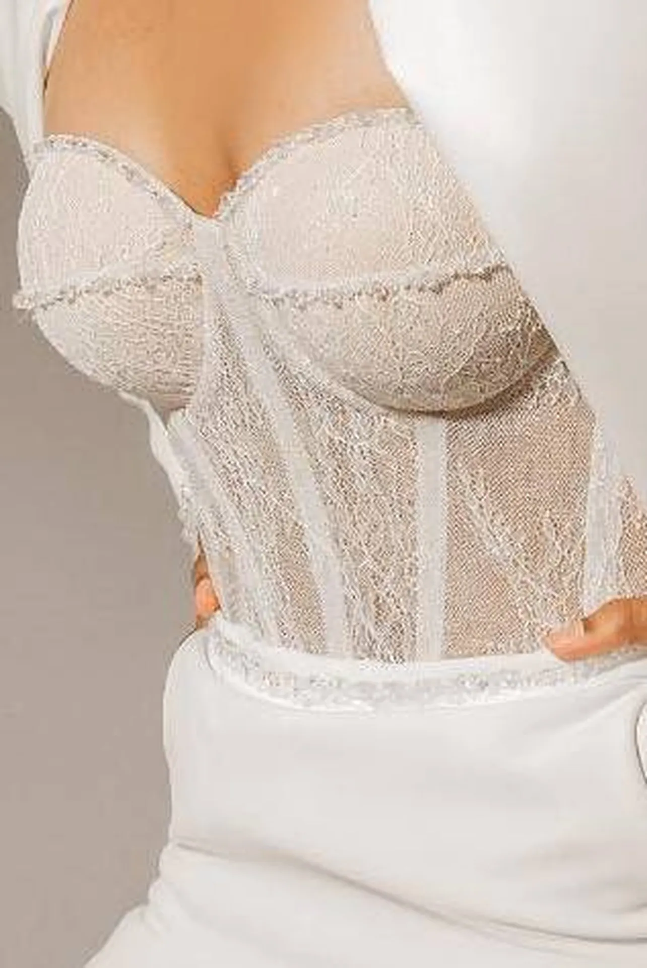 Cette combinaison de mariée se distingue par son bustier lingerie en dentelle fine, subtilement orné de baleines apparentes qui sculptent le buste tout en apportant un côté sensuel et raffiné. Son design élégant met en valeur votre silhouette, tout en ajoutant une touche de modernité avec son style épuré et chic.