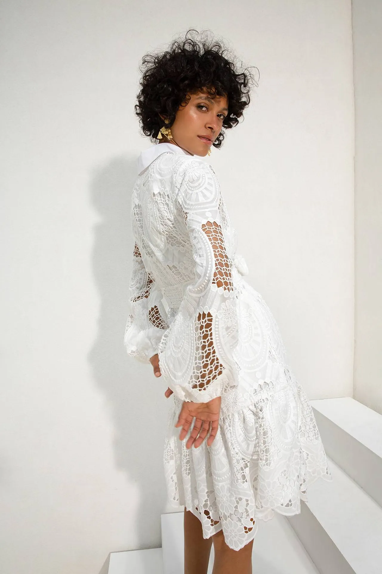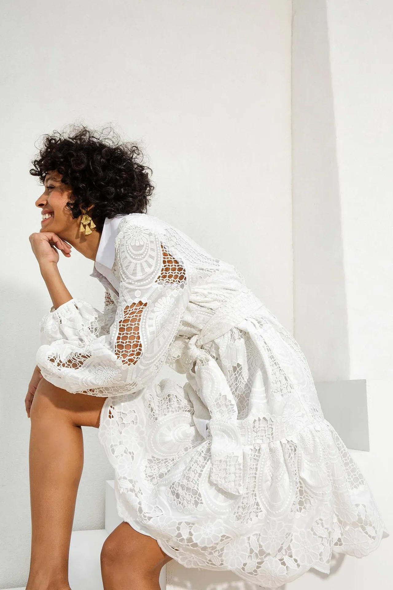 Cette robe courte en dentelle boho se distingue par sa coupe trapèze flatteuse et ses manches longues légères, idéales pour les mariages d'été. Que vous vous mariez en Corse, sur une plage à Ibiza, dans un mas en Provence au milieu des vignes, ou dans une paillote romantique, cette robe saura se fondre parfaitement dans votre décor. Son style bohoapportera une touche naturelle et élégante à votre cérémonie, tout en vous offrant un confort exceptionnel tout au long de la journée.