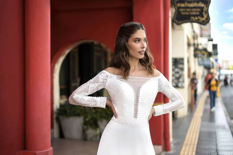 Robe de mariée bohème avec manches longues BM 2103 à Marseille centre ville