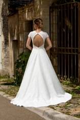 Le dos de la robe de mariée est ouvert en forme de goutte avec une jolie petite ceinture qui marque votre taille pour affiner votre silhouette