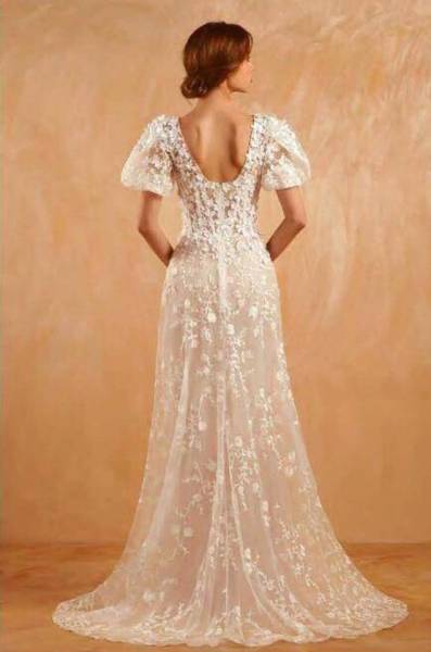 robe de mariée bohème brodé de petites fleurs avec manches bouffantes ballon à marseille