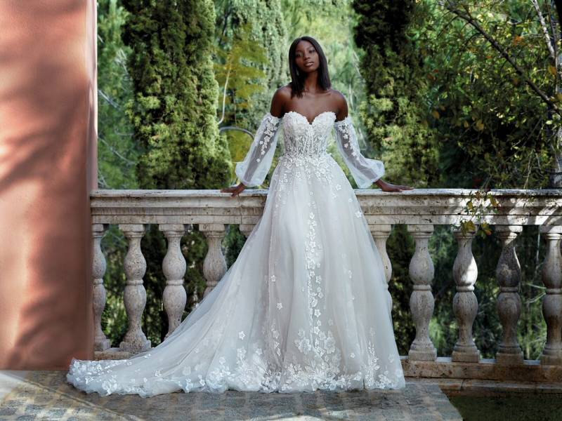 Robe de mariée bohême bustier avec manchons amovibles Démétrios 1184 à Marseille