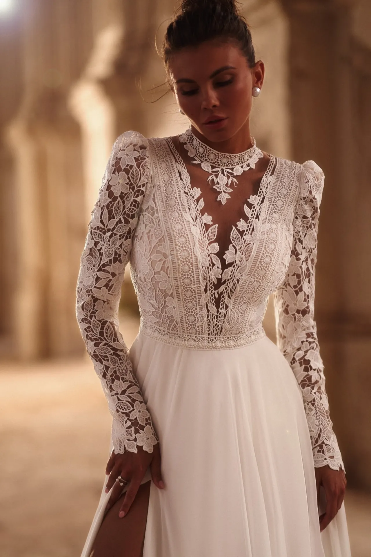 - Dentelle de coton boho : Sa matière authentique la distingue des autres robes de mariée.