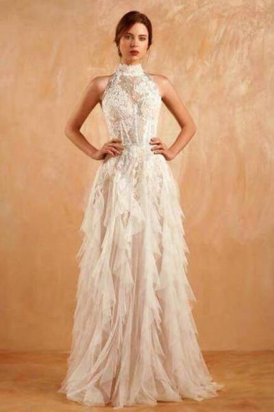 robe de mariée bohème emmanchure américaine avec cascade de tulle à marseille