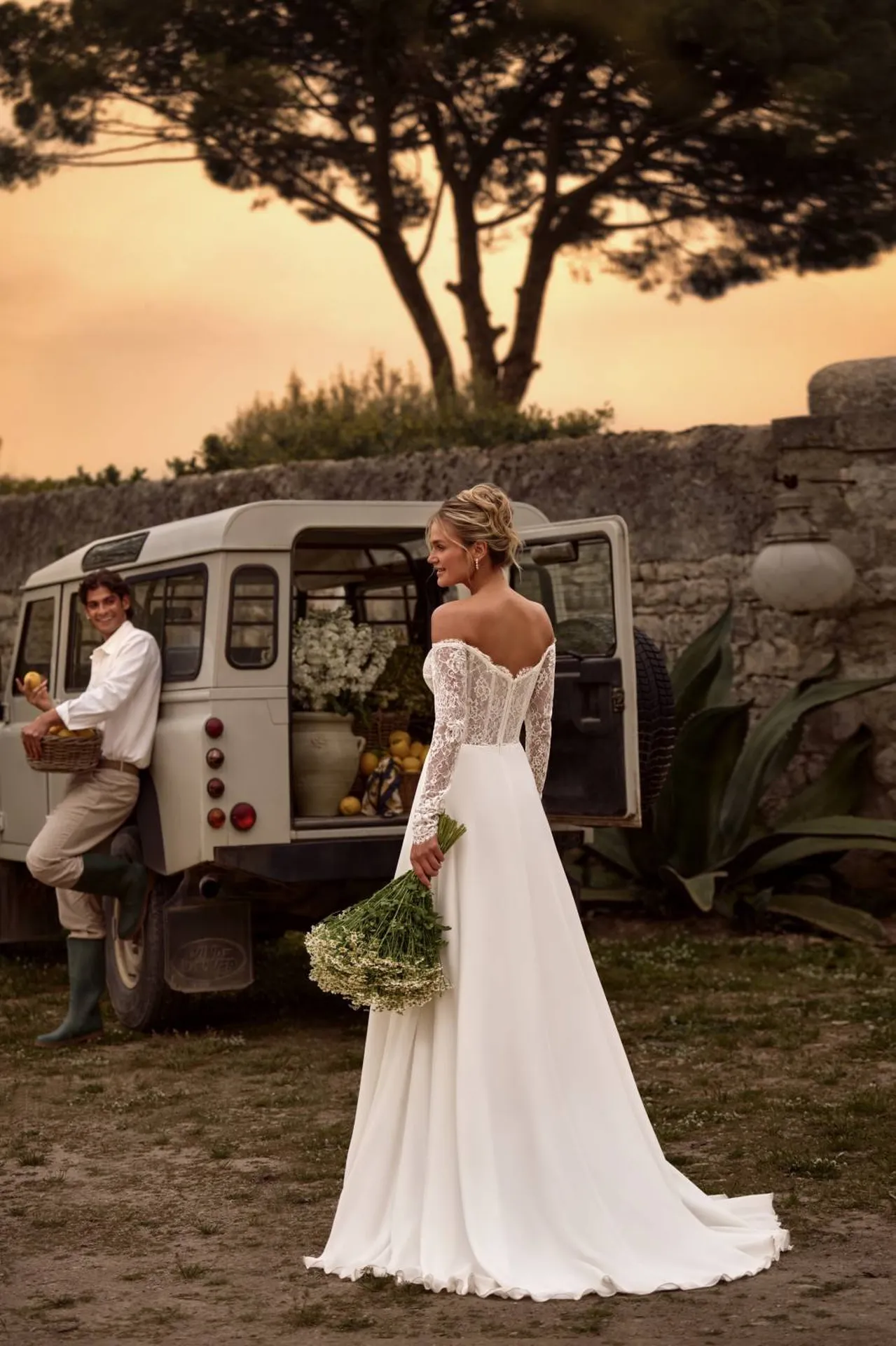 dans cette nouvelle collection de robe de mariée venez découvrir Ophélie la robe longue champêtre top tendance cet année à marseille