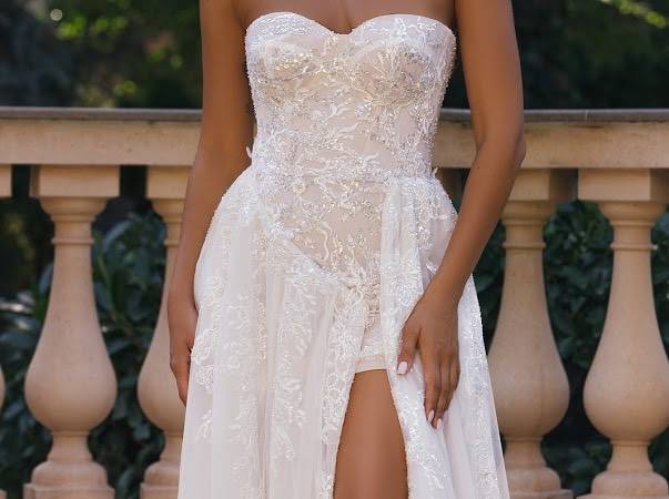 Solution Cérémonie, votre boutique de robes de mariée à Marseille, vous présente en exclusivité la nouvelle collection 2024 de la créatrice ukrainienne Anna Sposa. Parmi les modèles les plus innovants, découvrez la robe Darnel, une pièce unique qui répond aux attentes des mariées modernes et audacieuses, alliant élégance et audace avec une touche rock chic.