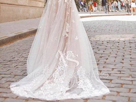 robe de mariée de créateur en dentelle dos nu avec longue traîne à Marseille