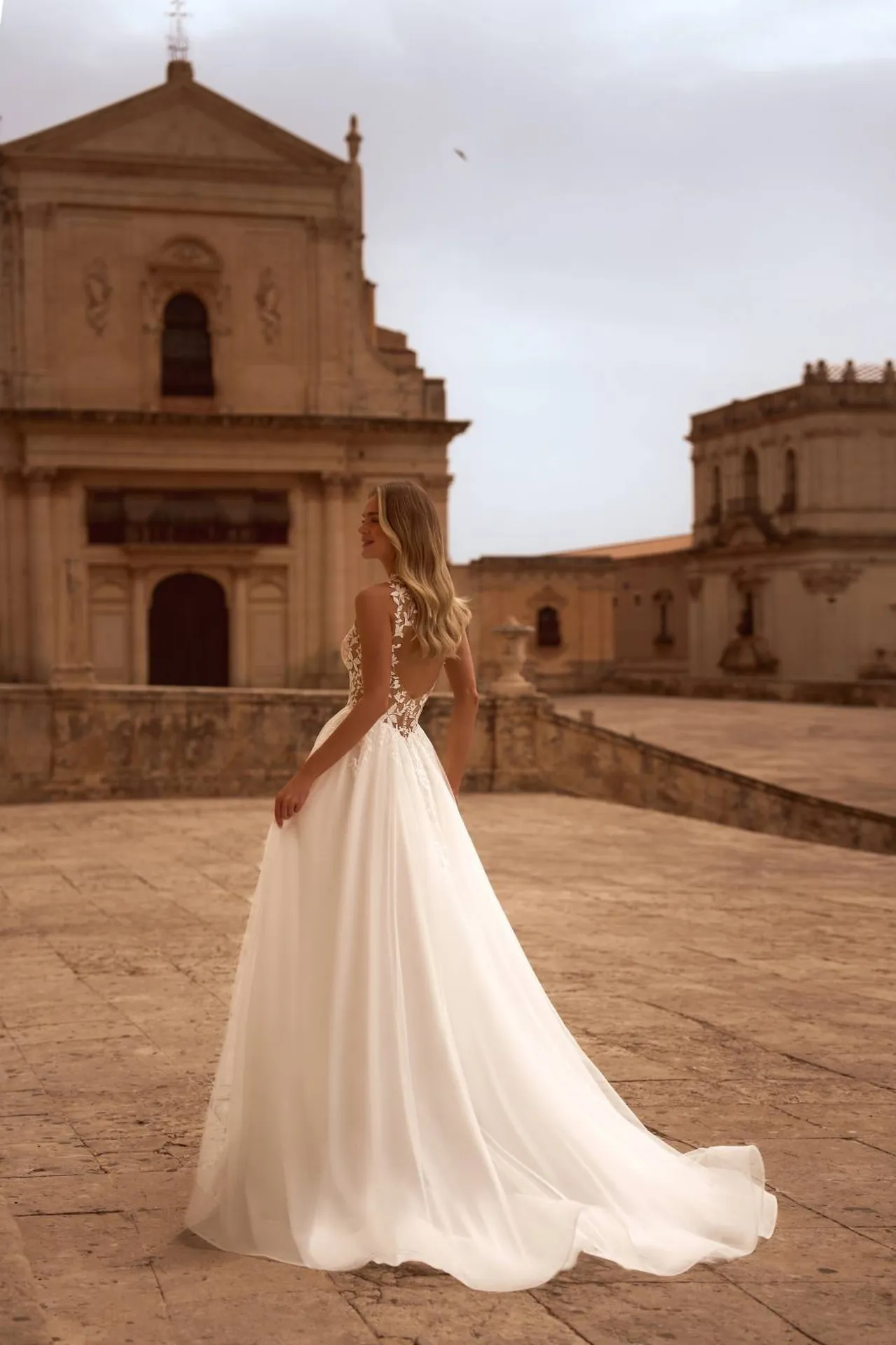 La robe de mariée princesse se termine par une jolie petite traine légère et raffinée qui apporte une touche de romantisme