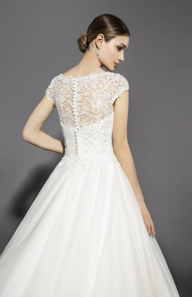 Robe de mariée princesse modèle MAENA à marseille en guipure et tulle.