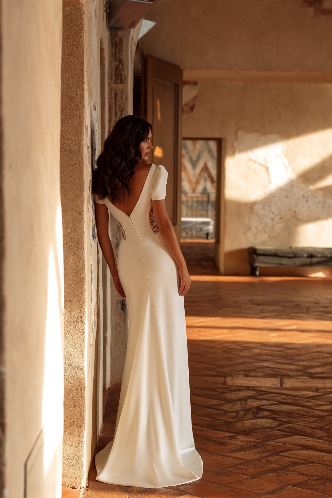 Le bas de la robe est confectionné dans un crêpe d’une qualité exceptionnelle, qui épouse le corps avec élégance et fluidité. Cette matière lisse et soyeuse dessine les lignes du corps, qui met en valeur la silhouette tout en conservant une allure discrète et raffinée. La coupe sirène de la robe Lanlia permet ainsi de sublimer les courbes de manière naturelle et sophistiquée, faisant de ce modèle un choix idéal pour les mariées qui souhaitent allier glamour et minimalisme.