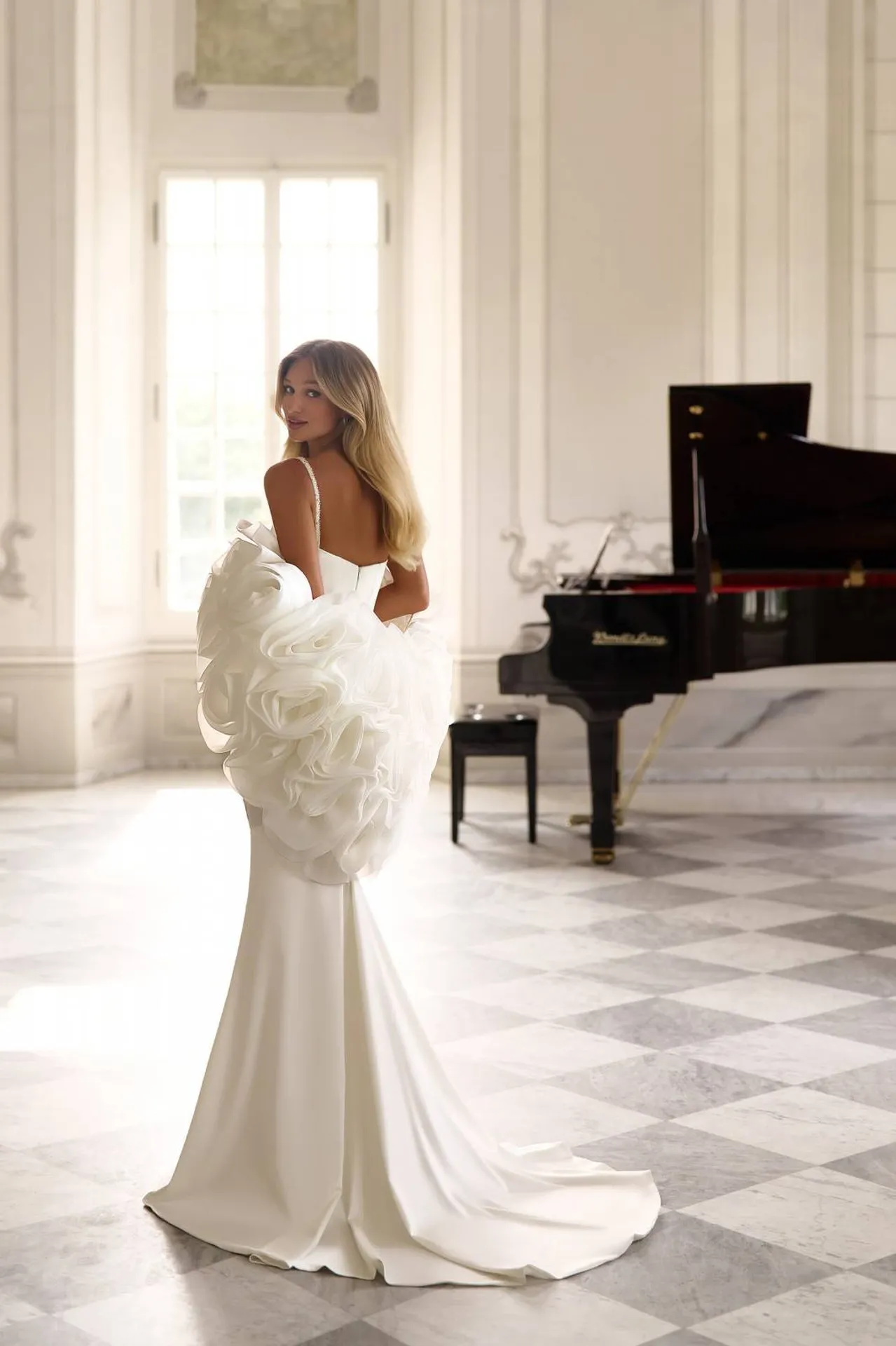 robe de mariée en fine dentelle forme sirène avec la possibilité de rajouter une traîne de