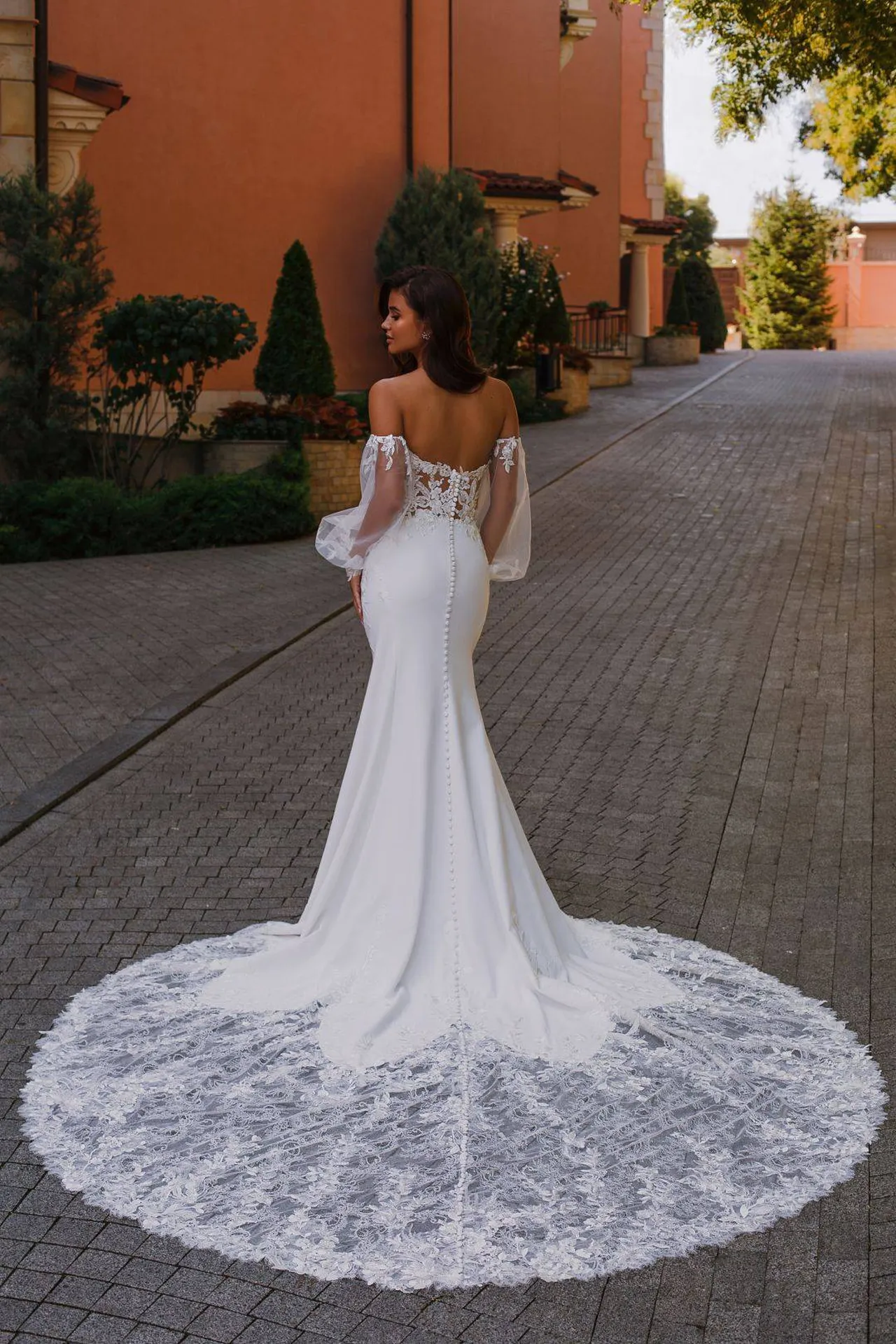 Robe de mariée sirène ROSENGELLA avec longue traine en fine dentelle 2025 à Marseille