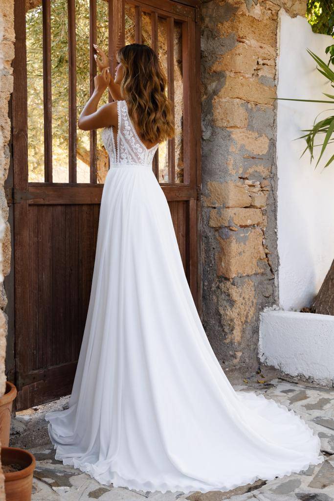 Le bas de la robe de mariée est en mousseline fluide et confortable