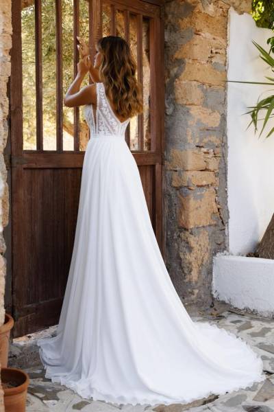 La robe de mariée Vilda est une robe de mariée forme trapèze , bohême , fluide et légère