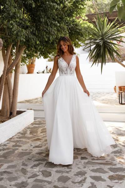 La nouvelle collection bohême 2022 / 2023 est disponible , la jeune creatrice branchée ukrainienne Anna Sposa vous présente la robe de mariée trapèze bohême modele Vilda , en essayage uniquement chez pour Solution cérémonie 16 rue Breteuil à Marseille