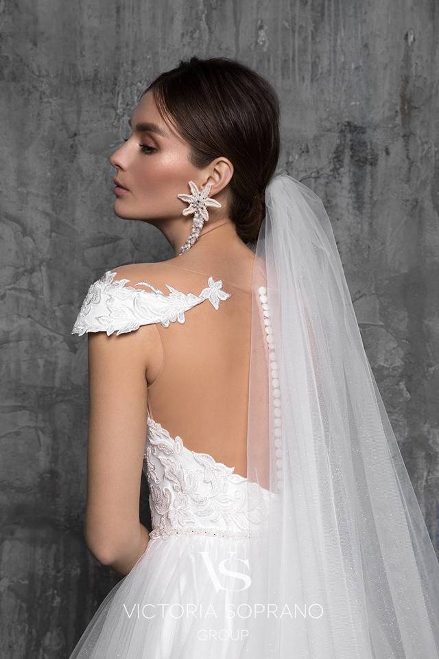 Dos nu en V fermé avec une multitude de boutons de soie blanche pour une allure chic et romantique