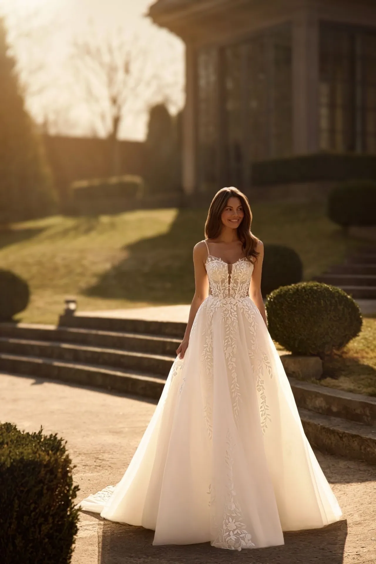 Robe de mariée princesse décolleté bateau en fine dentelle avec traine longue à Marseille 13001La boutique solution cérémonie à l'honneur exclusive de vous présenter la nouvelle collection 2024 de Démétrios et Démétrios Platinium avec des modèles a vous...